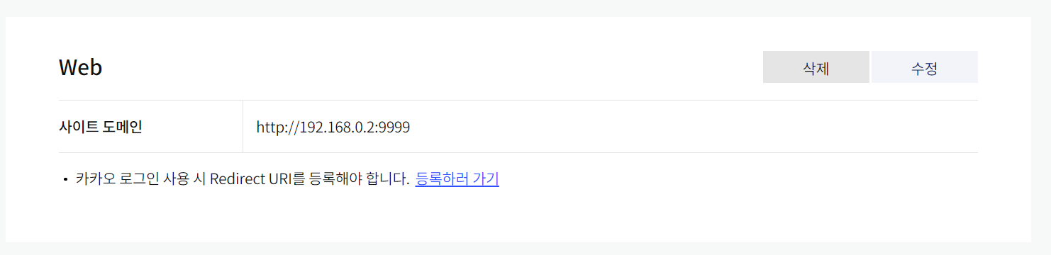 플랫폼(Android, IOS, Web) 중에 Web을 만든 상태에서 진행을 합니다. Web을 만들 때 Redirect URL을 입력해야 합니다. 저는 192.168.0.2:9999로 했고, 그냥 제가 아이패드에서도 주피터 노트북 쓰려고 열어놓은 내부 서버 IP입니다. (당연히 바깥에서 쓸 때는 외부 서버로 씁니다.)