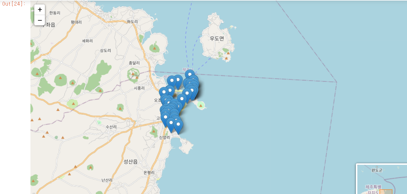 m = folium.Map(location=[33.4935,126.6266], # 기준좌표: 제주어딘가로 내가 대충 설정