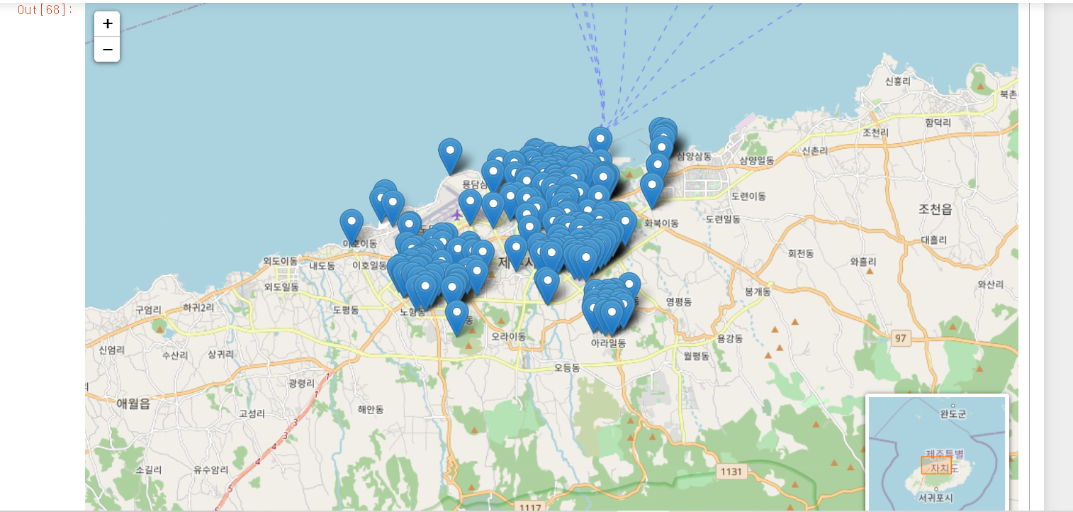 m = folium.Map(location=[33.4935,126.6266], # 기준좌표: 제주어딘가